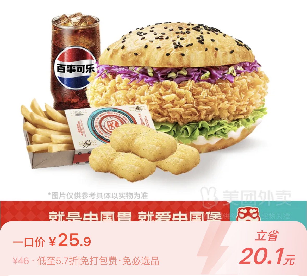 【直播专享】香辣腿堡+塔塔鸡块1块X3+粗薯+可乐